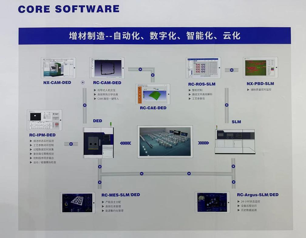 除了工藝展品之外,煜宸展位還展出了“軟件全家桶”,一系列智能化控制軟件,為實現(xiàn)金屬增材制造過程“智能識別、預(yù)置處理、遠程控制、人工輔助”的智能化工廠級品質(zhì)控制模式提供必要的保障。