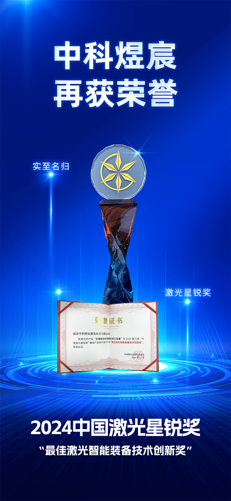 11月28日,2024中國(guó)激光星銳獎(jiǎng)新鮮出爐,中科煜宸“五軸聯(lián)動(dòng)水導(dǎo)激光加工設(shè)備”榮獲“最佳激光智能裝備技術(shù)創(chuàng)新獎(jiǎng)”。