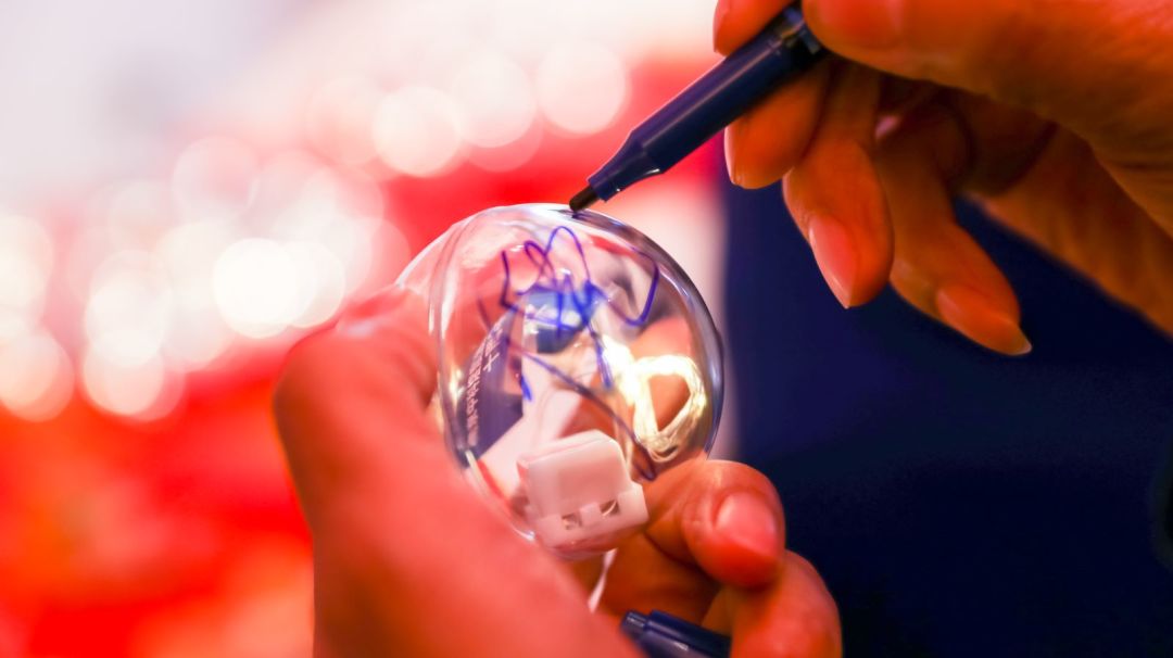 *嘉賓與員工在發(fā)光球上簽名