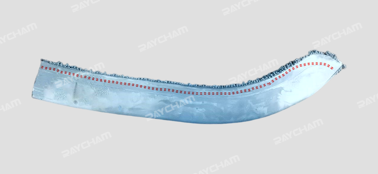 該零件為電鍍成型金屬材料,橫截面呈V字形,壁厚1mm左右。