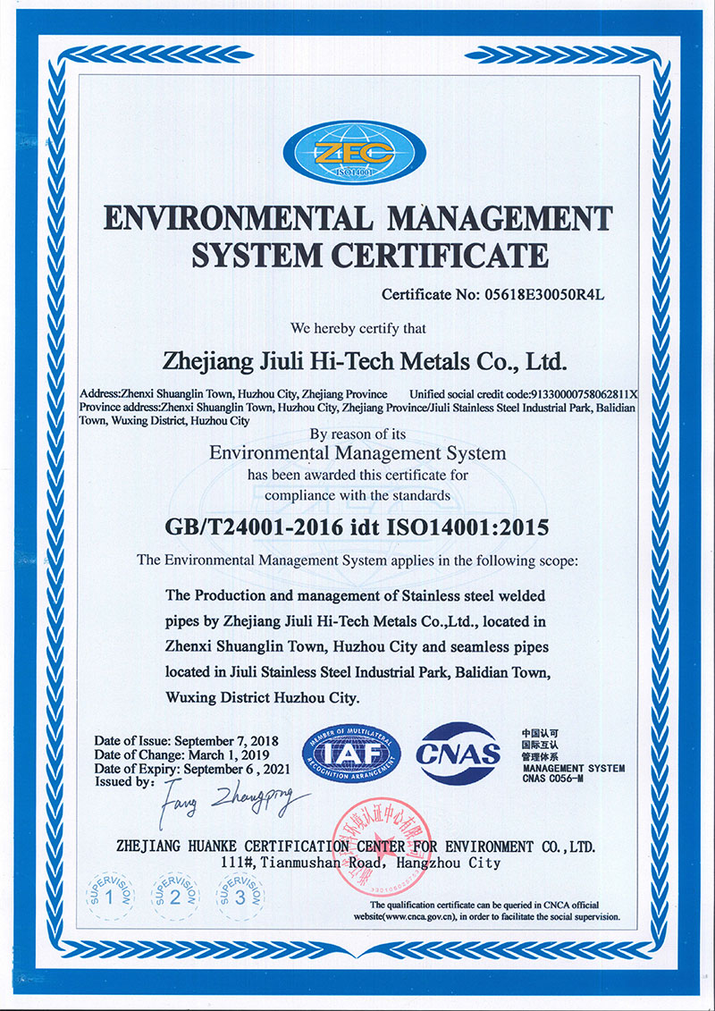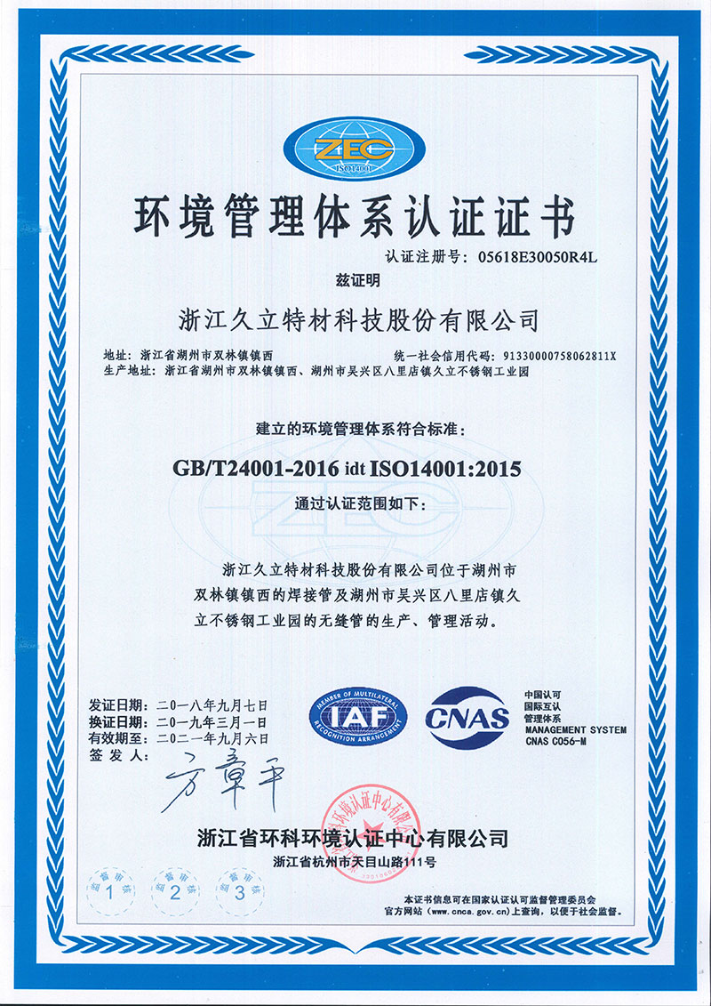 首頁 > 資質(zhì)證書 > 特材環(huán)境體系中英文證書