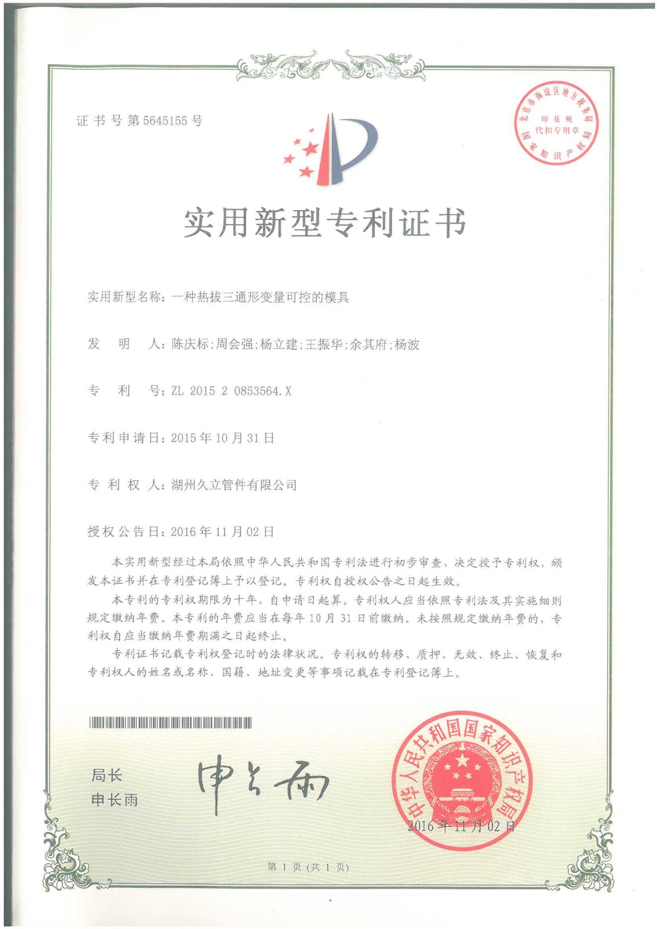 實(shí)用新型專利證書1