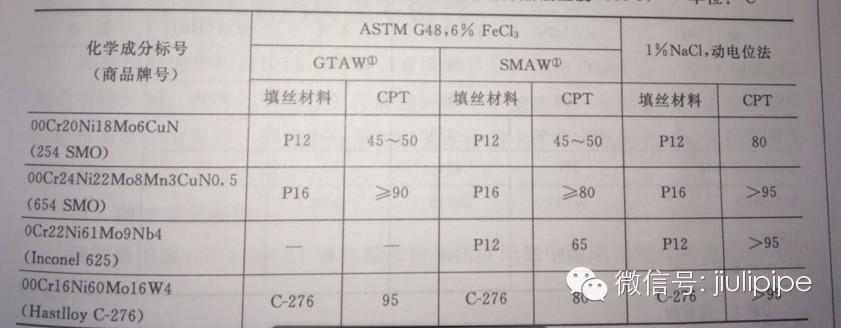 表6.超級奧氏體不銹鋼的臨界縫隙腐蝕溫度(CPT) 單位:℃