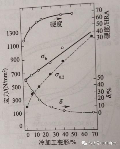 圖3.冷加工變形對304鋼的力學(xué)性能的影響