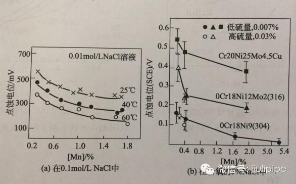 為了發(fā)展以錳、氮代鎳不銹鋼和為增加鋼中氮的溶解度,進一步發(fā)揮氮在鋼中的有益作用,開發(fā)加少量錳的奧氏體不銹鋼和雙相不銹鋼時都要充分注意錳在不銹鋼中對耐蝕性,特別是耐點蝕性的不利影響。