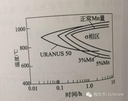圖5.錳對00Cr25Ni5Mo3N(URANUS50)鋼σ相形成傾向的影響