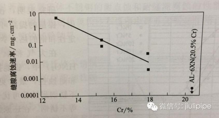 隨不銹鋼中鉻量的增加,不僅在氧化性酸介質(zhì)中耐蝕性增加,而且對提高不銹鋼在氯化物溶液中(包括Cl-的大氣和水介質(zhì))耐應(yīng)力腐蝕、點(diǎn)蝕、縫隙腐蝕等局部腐蝕的能力也有重要作用。