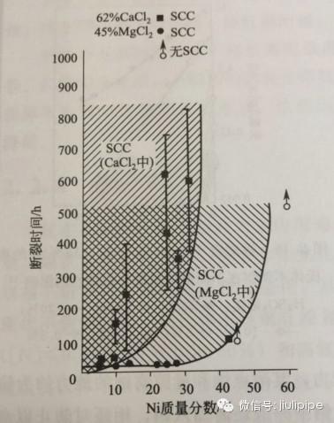 圖4.鎳對18%Cr-Ni鋼耐氯化物應(yīng)力腐蝕性能的影響