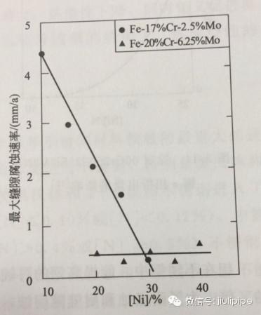 圖5.鎳對鉻鎳奧氏體不銹鋼耐縫隙腐蝕性能的影響