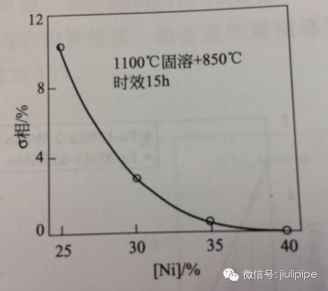 圖6.鎳對00Cr25Ni25Si2V2Nb鋼σ相析出量的影響